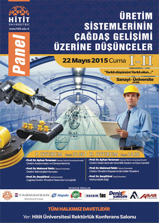Hitit Üniversitesi Endüstri Mühendisliği Bölümü tarafından 22 Mayıs 2015 tarihinde düzenlenen ‘Üretim Sisteminin Çağdaş Gelişimi Üzerine Düşünceler Paneli’ adlı panele DENİZ YALITIM olarak sponsor oldu. Panelde konuşmacı olan Prof. Dr. Serpil EROL, Prof. Dr. Mahmut TEKİN ve Prof. Dr. Ayhan TORAMAN Çağdaş Üretim Yönetimi Sistemleri ve Lojistik, Mühendislik Etiği, Üretim Yönetimi Kapsamındaki Kalite Yönetimi, Üretim Sistemlerinde Verimlilik Neden ve Niçin Gerekli konularında katılımcıları bilgilendirdiler.